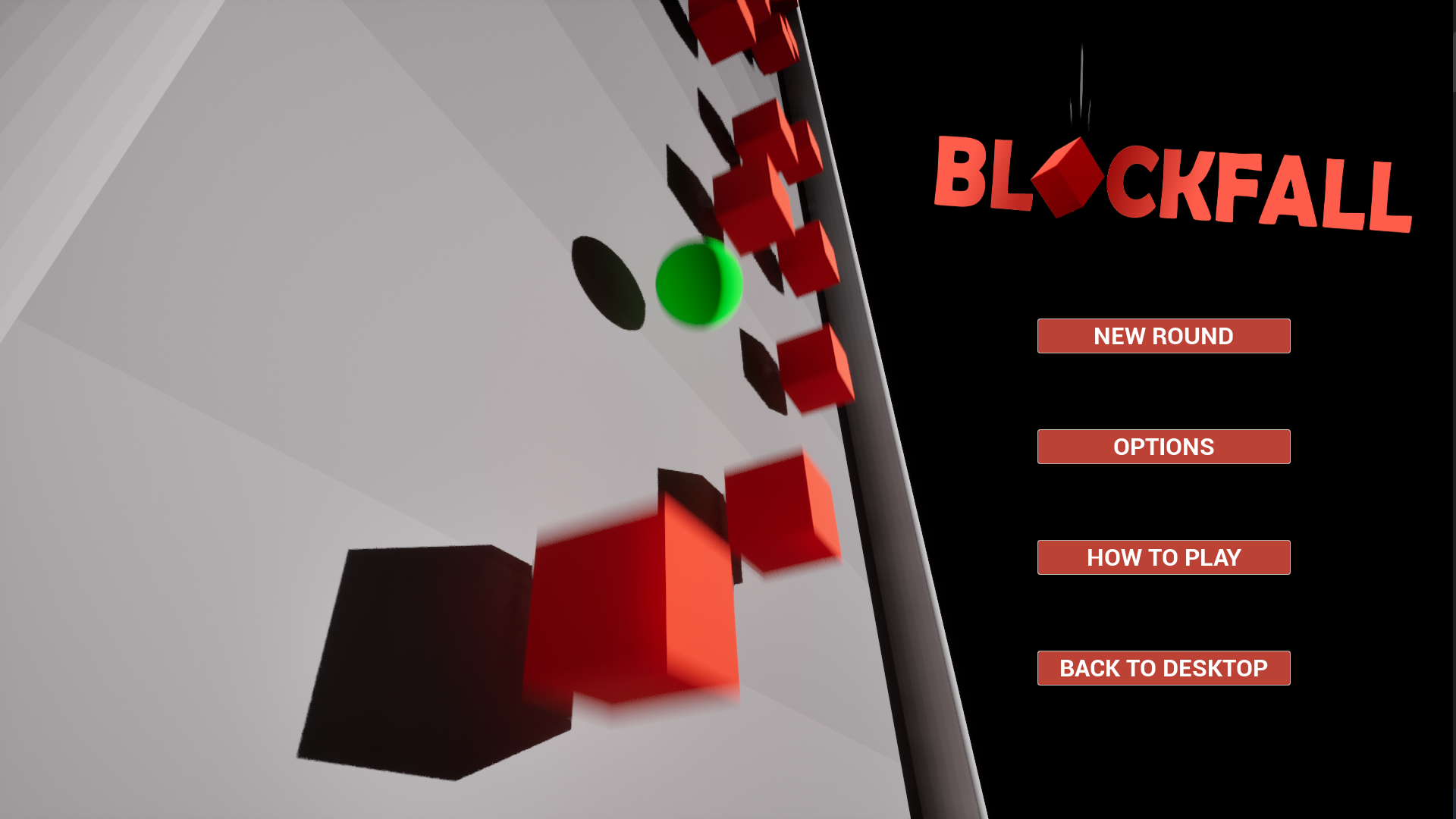 BLOCKFALL is a minimalist arcade survival game centered around spatial awareness, pressure management, and score-based mastery. Players control a pink cube that can only move left and right while orange blocks continuously fall from above, pushing the player downward toward a game-over zone.